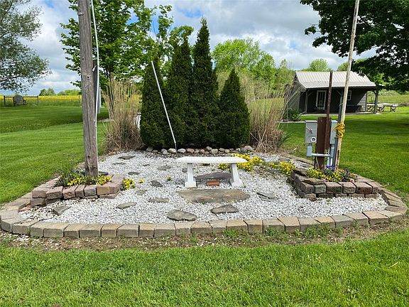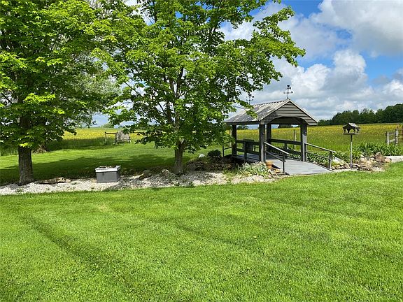 A must see! This beautiful 1.35 acre oasis is surrounded by fields and fantastic views. Enjoy the peaceful surroundings from one of the many quiet spaces - the enclosed front porch, front deck, back patio, outbuilding patio, covered bridge, or wooden bench along the property edge. Ample storage is available with 2 sheds and a large outbuilding that boasts 3 distinct spaces. Turn one of the spaces into a she-shed, guest space, or just use for storage, the possibilities are endless. A cozy & welcoming enclosed porch greets you as you enter this well kept home. Inside you will find an updated kitchen with stainless appliances, living room with shiplap accent wall, dining area, master bedroom with full master bath, two additional bedrooms, a full bath, bonus living space, and first floor laundry. Brand new metal roof with transferrable warranty. Come experience it for yourself, you won’t want to leave! Be the first to see it at the Twilight Open 5/22 5-7pm