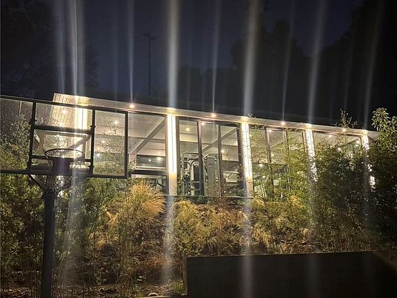Crowning the hilltop is a state-of-the-art, floor-to-ceiling glass gym, paired with a half basketball court below. After your workout, unwind in the main house's steam room and Swedish sauna, complemented by smart-controlled LED lighting that enhances the ambiance throughout the property.