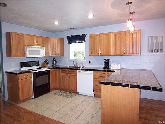 Leave behind the hustle and bustle and step into serenity! This newer Custom Ranch is located on over 5 acres, perfect for nature lovers yet close enough to city amenities. Boasting 3 spacious bedrooms, 3 bathrooms, an open concept living room and dining area, fully applianced kitchen and a 2 car garage. Bonus area includes additional living/dining space, laundry and kitchen, perfect for an in-law suite! Enjoy the extra acreage that offers endless possibilities for animal lovers! Minutes away from NYS Thruway and Turning Stone Casino!