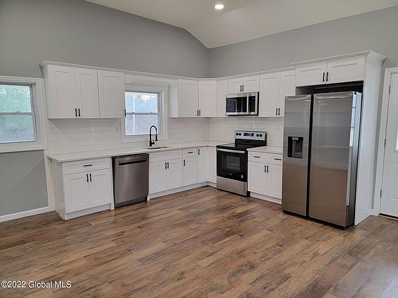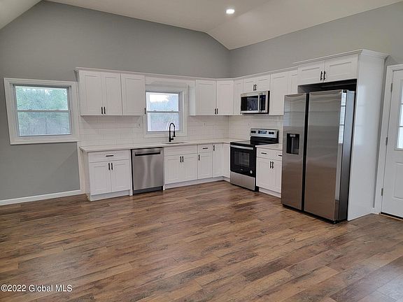 This charming farmhouse has been professionally remodeled to be your dream home. The peacefull setting with pond only add to the value and all of the enjoyment country living has to offer. Attention has been given to every surface including brand-new kitchen with granite counters, tiled backsplash and new appliances. Great care has been taken to transform this home into the ultimate open concept with vaulted ceilings. Other updates include windows, doors, lighting, on-demand heating system, siding, roof and floors. Plenty of room for recreation inside and out. Adjoining land is available for sale. State Forest nearby.