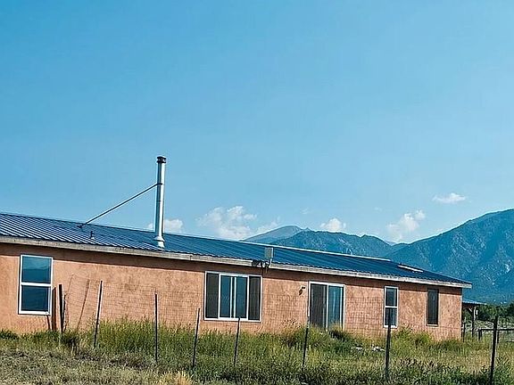Step into a 2,176 SF sunny home in Baca Grande Grants, with stunning mountain views thoughout, on 2+ acres backing a greenbelt, steps from Willow Creek and 8 minutes to Crestone. The bright entry room leads to a large open-concept living, dining, and kitchen area. New south-facing Anderson windows bring passive solar warmth and light, and a new efficient wood-burning stove gives cozy charm.