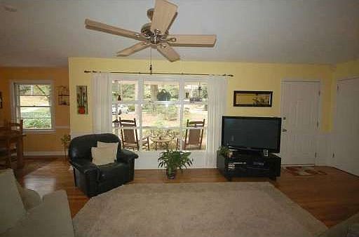 Lovely ranch with an exceptional corner lot. Third bedroom was opened to serve as an office or den. Great flow and hardwoods throughout this home. French doors open home onto an expansive deck perfect for entertaining. Yard plenty big for pets, kids, and gardening; back yard completely fenced in. Easy access to Buckhead, Perimeter Mall, I-285.