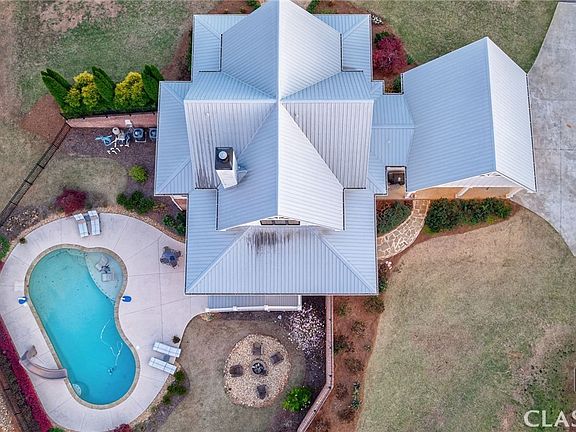 The American dream embodied in this 4 bed 3.5 bath country farmhouse on five meticulously maintained fenced acres. Covered porches overlooking a refreshing pool plus a built-in slide and a playground for the kids. This house is both mature and refined for the adults and a wonderland for the kids. In the coveted North Oconee High School, Dove Creek Middle School, and Rocky Branch Elementary School school system. The back porch is due West, so you’ll have a gorgeous sunset in your private back yard. A two car detached garage with a lean-to is on the right side of the paved driveway. Open floor plan with a gorgeous kitchen island, custom cabinets, quartz countertops, and a spacious walk in pantry. In the main floor living area, there’s a wood burning fireplace with ten foot ceilings and beautiful exposed wooden beams that connect seamlessly to the aesthetically pleasing black iron clad windows that look over the estate. There are stunning hardwood floors throughout the first two levels. The master bedroom and its walk-in closet sits on the main floor overlooking the pool and connects to the back porch. There’s a clawfoot tub and an oversized shower that also steams in the master bath. Upstairs you will find 3 bedrooms all with beautiful views and two baths. One bedroom has a private bath and the other two bedrooms share a hallway bath. There’s a completed basement with a full bed with a private bathroom, A ½ bath, full kitchen with stainless steel appliances and LVP, and a gym. The basement leads out to your personal oasis that includes luxurious landscaping with welcoming hard scape surrounding the 20 x 38 salt water pool.