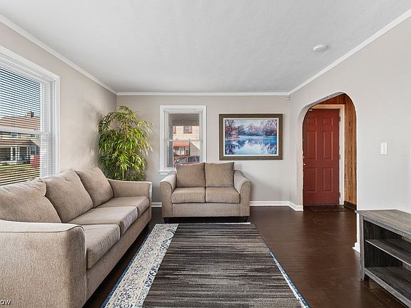 Welcome home to this charming 2.5-story house in Canton, located just minutes from dining and shopping at Canton Center Plaza, with easy access to Raff Rd SW and US-30. The main level features a spacious living room with hardwood floors and newer vinyl windows that provide a ton of natural light. Around the corner is the formal dining room and a convenient first-floor half bath. An arched doorway leads to the kitchen with lots of cabinet space and included appliances. The 2nd floor includes 3 sizable bedrooms with hardwood floors, and a full bathroom with tub/shower combo. Head up to the 3rd level and find a huge bonus room with hardwood floors that could be used as an office, playroom, or possible 4th bedroom. The full basement offers tons of storage space, a laundry area, and a new water heater (2021). Enjoy your morning coffee on the large front porch and get ready for some awesome summer barbecues on the brick patio out back. The paved concrete driveway offers plenty of off-street parking, and leads to a massive, high-quality shed to store yard equipment, patio furniture, and more. This house has been well-maintained, completely repainted inside, and there’s nothing left for you to do except move right in. All furniture and decorations in the photos STAY with the house. Call today to schedule your private showing!