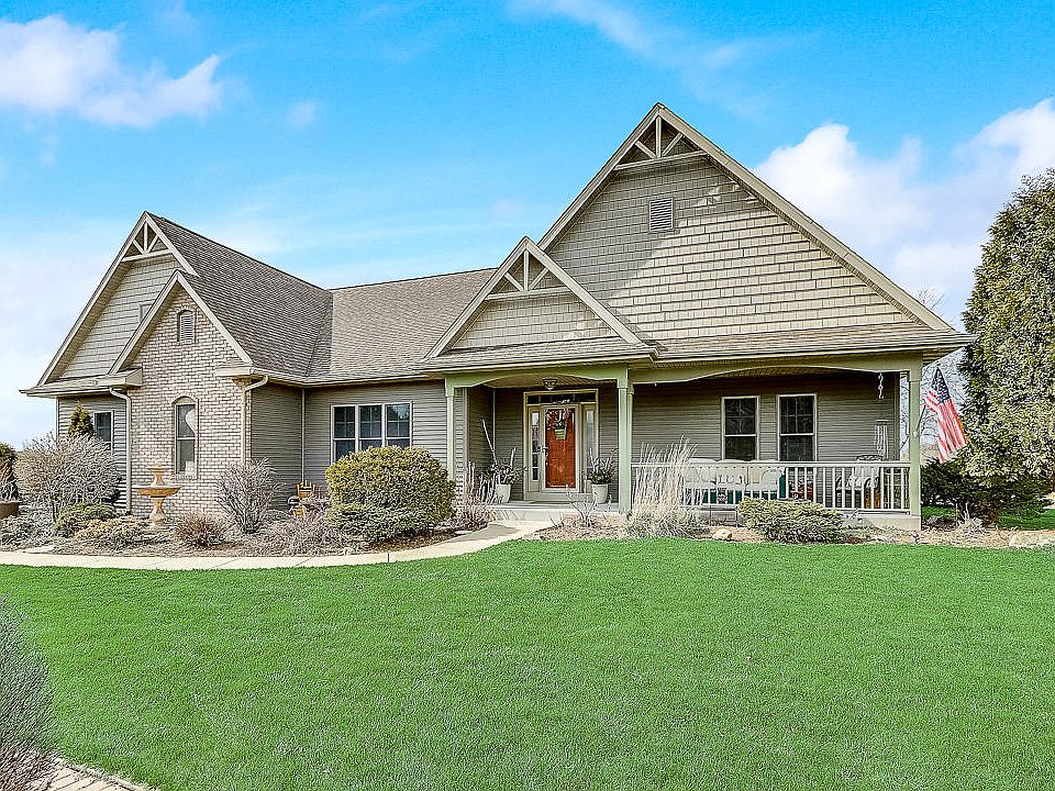 A Recreation Enthusiast's Dream! This custom, quality-built home is on 3+ acres, nestled between holes 6 & 7 of Fire Ridge Golf Course. Located just steps from the Interurban Bike Trail. This home features high ceilings, wood floors, a floor-to-ceiling fireplace, arched entry ways, mud room w/cubbies and a huge bonus room over the garage. Transom windows & solar tubes fill this home with natural light. Enjoy a game of pool in the LL family room w/fireplace. The LL also has a bedroom, full bath, plenty of storage and garage access. Sit on the balcony or deck and enjoy the spectacular sunsets that the golf course was named for. Entertain on the patio with built-in fire pit. Extra 22' X 24' garage has a heated shop. Home is generator-ready. This home has been meticulously maintained & loved.