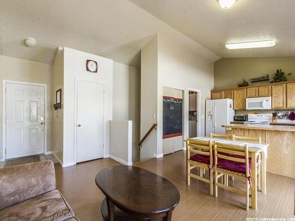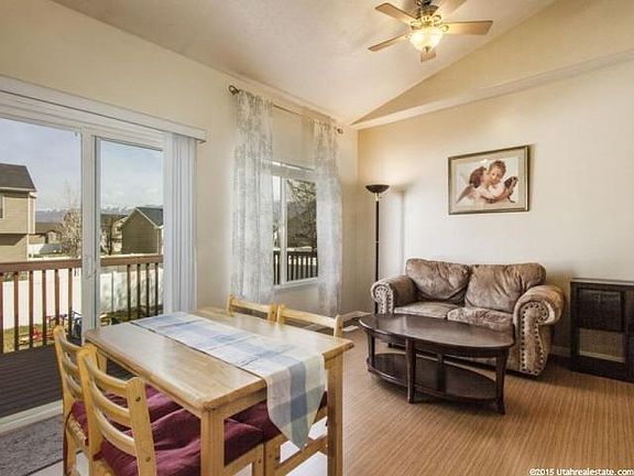 Your snow will melt faster, and your flowers will bloom earlier in this fun south facing raised rambler. Fresh paint and new carpets say move right in. You will enjoy open kitchen, vaulted ceilings, and walk in closet in the master bedroom, main floor laundry, and the basement family room with built in speakers for your own home theater. Unique to this home is a loft area above the garage that is not counted in the square footage, but gives you 320 sq ft of floor space right off the kitchen for storage. The fenced yard is a good size and perfect for kids or pets. Just 1/2 block away is access to the easement to the park and recreational trails. You'll have great neighbors, and easy access to freeways, with just a 9 minute ride to downtown SLC.