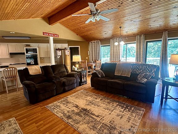 WATERFRONT LIVING IN LONGTOWN! This charming home offers the perfect blend of comfort, convenience, and lakefront fun. Located on the water with its own enclosed private boat dock with lift, this property is a dream for boating and fishing enthusiasts. The main floor features 2 bedrooms, an open floor plan filled with natural light, and a cozy fireplace—perfect for relaxing after a day on the lake. The lower level offers a spacious room currently used as a 3rd bedroom and game room, giving you flexibility for guests, hobbies, or entertainment. An attached small garage is ideal for storing your golf cart or lake toys, and the home comes mostly furnished, making it move-in ready for your next adventure. Whether you’re looking for a full-time residence or weekend getaway, this property has it all—right in the heart of Longtown. Start your lake life today! Schedule your private showing and see why this home is the perfect waterfront retreat.