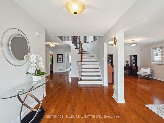 Welcome to this beautifully updated Oxford model in the heart of Glen Abbey, one of Oakvilles most desirable communities. This spacious family home offers a perfect balance of comfort, style, and outdoor living. Set on a private, landscaped lot, the backyard oasis features a saltwater inground pool with a new heater (2024), stone patio, pool house, and mature trees providing peace and privacy.Inside, the open-concept layout features hardwood flooring throughout, a sunlit living room with crown moulding, and a formal dining roomperfect for entertaining. The modern kitchen, updated in 2023, features two-tone cabinetry with glass inserts on the upper cabinets, pot lights, and under-cabinet lighting for a bright and functional workspace. It boasts quartz countertops and backsplash, a large island with breakfast bar, and high-end JennAir appliances including a built-in wall oven, cooktop, microwave, wine fridge, and a paneled built-in fridge that blends seamlessly with the cabinetry for a sleek, integrated look. The family room adds warmth with a stone feature wall, fireplace, and wainscoting. A main floor laundry room provides access to both the yard and the garage, and a powder room completes the main level. Upstairs, you'll find five spacious bedrooms, including a primary bedroom with two walk-in closets and an updated spa-like ensuite (2022) featuring double sinks, a glass shower, and a freestanding soaker tub. The additional four bedrooms share a well-appointed 5-piece main bath. The home also includes updated windows, a new roof (2024), and new furnace and A/C (2022). Ideally located within walking distance to top-rated schools, parks, trails, Glen Abbey Community Centre, and just minutes to highways, public transit, and the GO Train, this home combines luxury, comfort, and convenience inside and out.