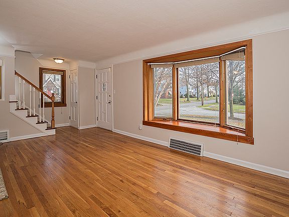 Sharp, Move-In Ready and well maintained home with attached garage and updates throughout. Features hardwood floors, freshly painted rooms and trim. Fireplace and bay window in family room, connecting dining room that leads to sun room. Charming updated kitchen with counter seating. Finished and newly carpeted basement with decorative fireplace and lovely updated half bath. Laundry area is freshly painted with folding counter. Three bedrooms on second floor feature hardwood floors and nice size closets. Bath is fully updated. Walk up attic access from bedroom. The exterior features lovely landscaping on a corner lot with private deck off the sun room. Roof:2004, furnace:2009, siding,gutters, downspouts:2006, hot water tank:2007. This home is a must see! Average monthly utilities: Gas $50/mo; Electric $95/mo