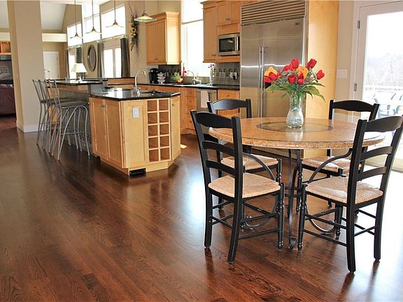 Wow! Just had the hardwood floors refinished in Kitchen, Great Room and Dining Room and they are gleaming and luscious! Also new carpeting in Master Suite, Office and all bedrooms on 2nd floor, including staircase and hallway. With an exquisite Kitchen, with refinished harwood floor, that has a breakfast bar, serving area, dinette, and a butlerâs pantry, all with Granite counters, that opens to the Great Room, entertaining your guests is a breeze. The barrel ceiling highlights the Great Room with a wall of windows, and Wet Bar. Open your many doors to the sprawling deck overlooking the fields to the horizon. Donât forget to sit or relax with your glass of wine on your screened in porch. Your guests and family can also be entertained in the expansive finished lower level with a beautiful Cherry Bar and full Kitchen that also walks out to the inground pool and fenced in patio area. The lower level also offers a 5th Bedroom, Exercise Room and a Full Bath with lots of storage areas. The various ceiling types and heights makes this home an Architectural dream, as well as the multiple window walls and elevations that allow beams of sunlight to permeate this home throughout the day. Additional storage of vehicles is available in the detached finished 4 car garage (50 x 30); in addition to the 3 car attached garage; with heated bays and a half bath, the perfect Man Cave! This Estate on a hill overlooks the surrounding farmlands.