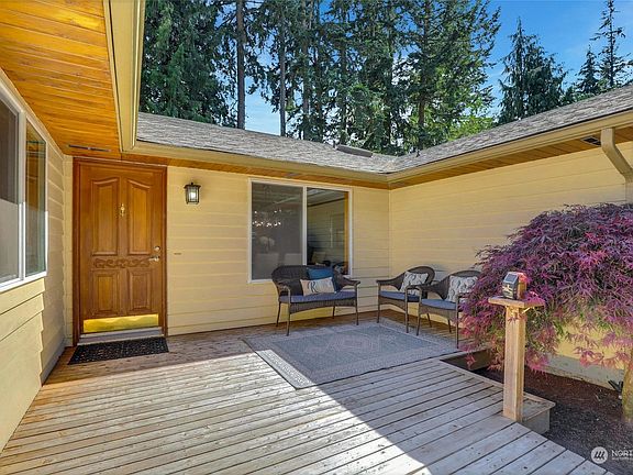 Custom rambler built 1987. 2040 sf on large lot 14,375 sf on cul de sac. Minutes to Mill Creek Town Center. Features great room, 3 bedrooms, 1.75 baths, formal dining room, den/office, box beamed ceilings, oak cabinets, Hardwood & Italian tile floors, granite counter tops, etched glass French doors, accessible entry. Exterior features front deck with accessible ramp, partial river rock wall with path from street level, rear full deck with gazebo.Nicely landscaped back yard with waterfall, magnificent evergreens. Garden shed. Martha Lzke Airport Park for play, walking, jogging.