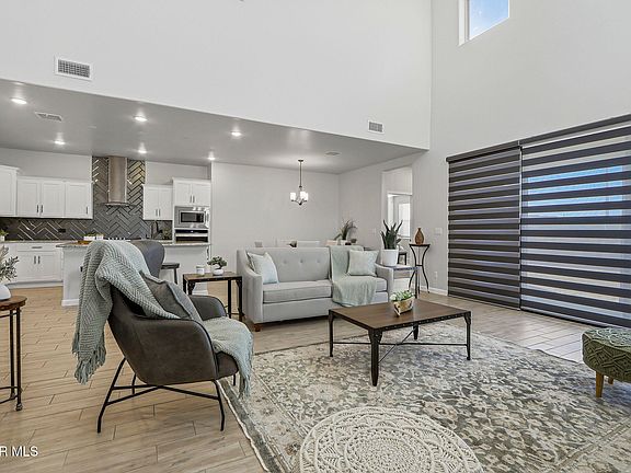 This stunning two-story home welcomes you with its beautiful Spanish colonial style exterior. As you enter, the foyer opens to a spacious layout with a gourmet kitchen that seamlessly connects to the dining area and great room. Featuring 5 bedrooms with the primary suite and second bedroom both located on the ground floor. Upstairs you will find an additional living area and 3 more spacious bedrooms. To enhance its luxurious feel, the builder incorporated several upgrades, including 8-foot-tall doors, oil-rubbed bronze hardware, granite countertops, ceiling fans, and an oversized wall of sliding doors. Located within the vibrant Mission Ridge planned community, residents can enjoy walking trails, nearby shopping centers, and diverse dining options. Schedule your showing today!