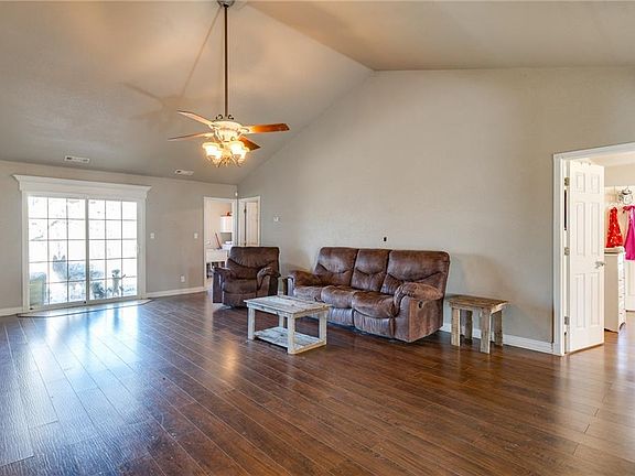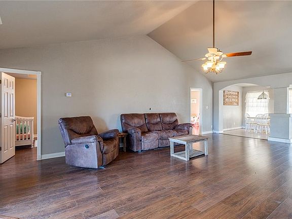 Beautiful country home on a large 3.5 acre lot! Large living room with soaring vaulted ceiling, laminate wood flooring, and gas log fireplace. Spacious kitchen with island, ceramic tile counters, pantry, stainless steel appliances, lots of cabinet space, and eat-in area. Formal dining. Large master bedroom with trey ceiling, access to patio, and large walk-in closet. Master bath has dual vanity, jetted tub, and separate walk-in shower. Jack & Jill bathroom for the 2nd & 3rd bedrooms with walk-in shower. Large laundry room has sink and half bath attached. Sit out under the covered rear patio or enjoy the large fenced-in backyard. Spring fed creek behind the residence. New interior paint and new garage door. New roof coming soon! Come see this amazing home!