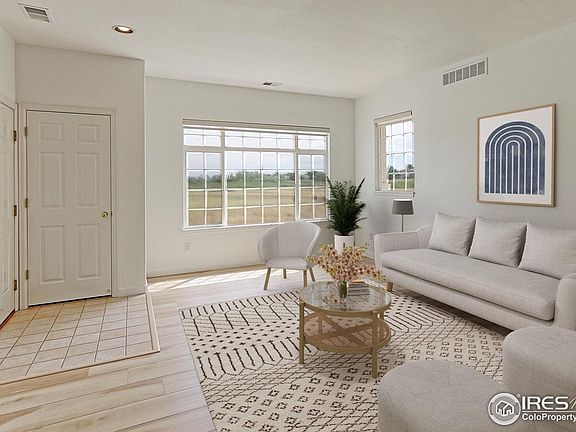 Welcome to the Falls at Legend Trails located in the heart of the Broadlands Community of Broomfield. This special end unit has outstanding views to the broadlands open space where you will enjoy vistas of Plaster Lake, Lake Link Trail Head, Broadlands Golf Course and natural grass lands. Inside, the abundant windows bring all of these outside elements indoors. Accompanying the views, the home is filled with modern upgrades including new LVP, new paint, an updated kitchen with white cabinetry, stainless appliances, upgraded hardware, modern fixturing, and quartz counters. The open floor plan allows for seamless flow between one room and the next. A large family room takes in the views from the outside while having direct access to the kitchen and eating areas. The home's Primary Bedroom is expansive in size and has a glass slider with access to a private patio where one can sit and enjoy the flora and fauna thriving in the open space. The attached Primary Bathroom with white cabinets, quartz counters and large footprint has dual sinks, bathtub and shower space. Storage is made easy with the oversized attached closet. The secondary bedroom is perfect for guests, an office or studio space with gorgeous views to the outside green space and lake. Rounding out the home is the laundry area with storage and direct access to the attached garage. The Falls at Legend Trail community has access to a private clubhouse with workout area and indoor pool. As part of the Broadlands community at large, there is also a community outdoor pool and numerous walking trails, playgrounds and top ranked elementary school, Coyote Ridge. Broadlands also has a public golf course for the area to enjoy. The community as a whole is wonderfully located near shopping, restaurants and highway access making The Broadlands one of the most desirable areas in Broomfield.