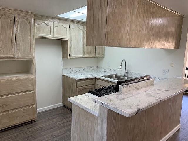 Terrific upstrs condo located in a gated community! The Unit has been remodeled with can lights, upgraded kitchen & bathroom, all new windows, new wall AC, and nice new hard flooring throughout. It also has a back deck and carport parking. You can also enjoy the beautiful pool and spa nearby. This complex has plenty of open areas, covered sections with tables and chairs, and laundry facilities. Conveniently located near the 5 freeway, near shopping stores and restaurants. This Unit will not last!com 1yr Lease minimum.