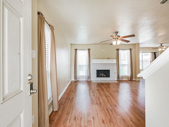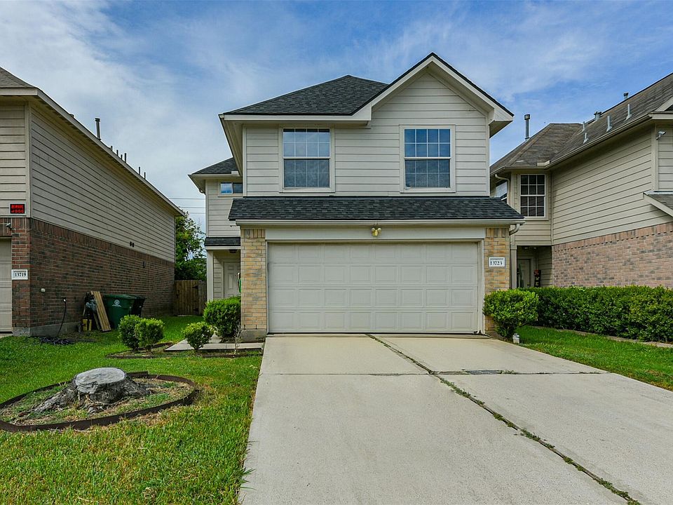 Welcome to your humble abode! This well kept property features an expansive driveway, two car garage, and an outdoor shed for your storage purposes. Enjoy family gatherings in the open concept living room featuring a a gas fireplace (we all know you'll probably never use), overlooked by a fully equipped kitchen; with appliances included! All bedrooms upstairs along with both full bathrooms so you can enjoy your guests, and your privacy! Vinyl flooring and tile fill the entire home while each bedroom comes with carpet. Washer & dryer included! Direct access to 45 & Beltway for easy entry into Downtown Houston & Galveston. Make this quiet and quaint neighborhood your home for years to come! ONE CAR GARAGE - GARAGE HAS BUILT IN STORAGE AREA*