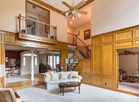 Nestled in a wooded enclave, this spacious home is located amidst a tranquil setting. Traveling toward the entry, one will notice lovely landscaping in a wooded family neighborhood. Entering a stone-lined front door of this Tudor home, guests are taking in by the expansive foyer and the towering great room, featuring vaulted ceilings & 2 stories of windows illuminating the area with natural light. The features of this dignified home are too many to mention. The south facing office overlooks the wooded back yard.