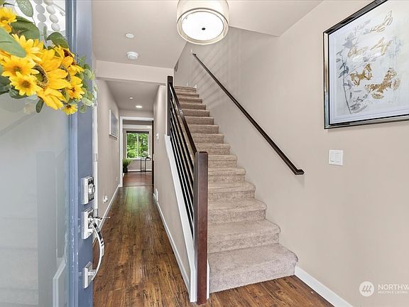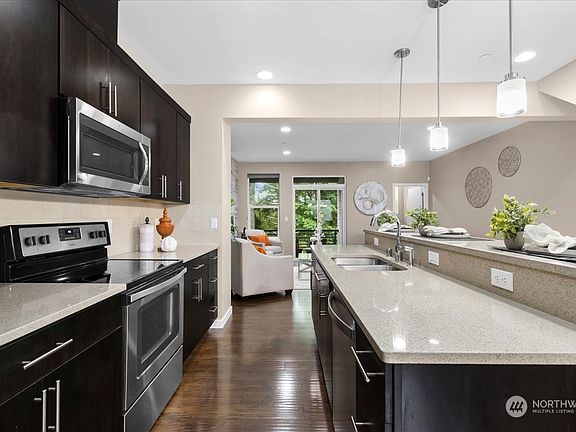 Meticulously maintained east-facing 2017 built townhouse in South Everett that backs to a lush greenbelt. This elegant 3 bdrm + bonus rm home offers a modern lifestyle w/ comfort, amenities, & the convenience of Lynnwood & South Everett. The great room concept allows you to engage w/ everyone, yet have the privacy of the bonus rm if necessary. Use that as another bdrm, office, playroom, workout or theater rm. Primary bdrm backs to trees & comes w/ a huge walk-in closet & private 3/4 bath. 2 add'l bdrms upstairs. Mins to McCollum P&R to the north, Ash Way P&R to the south, and the soon to be opened Light Rail Station in Lynnwood. 2 car driveway parking + 1 car garage & guest parking available. Convenient to I-5 & 405.
