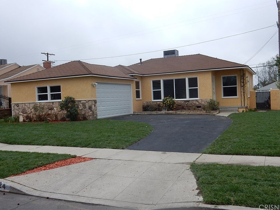 This great home situated in Arleta is centrally located and it offers a flowing floor plan with 1109 sqft, refinished hardwood floors throughout, spacious living room, newly remodeled kitchen with new cabinets and granite counter tops, new light fixtures, new tile flooring, adjoining dining room, 3 spacious bedrooms, with new mirror sliding doors, remodeled bathroom, laundry room, new A/C, new water heater, new interior doors, new windows, new front sprinkler system and sod, two car attached garage with new automatic sectional door, private back yard with block walls.