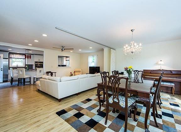 Fully renovated home with tons of upgrades. Main floor features large dining/living area w/ retractable panels & pass-thru window. Super-sized brand new chefs kitchen includes large pantry, 21 new cabinets, gas range with downdraft vent, double oven, TWO SINKS/DISHWASHERS. Upstairs is 3 bedrooms & 2 renovated bathrooms. Lower level includes marble tile, fireplace, walkout 4th bedroom, laundry room & 1/2 bath. 600 square foot deck, garden & outdoor shed complete this conveniently located oasis.
