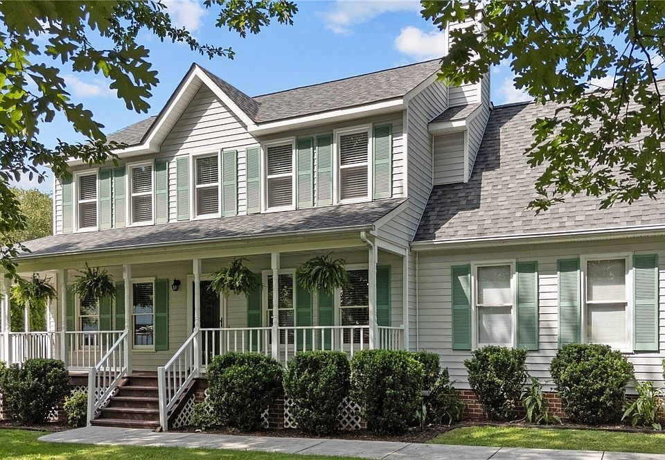 Back on the market due to buyers employment situation. This gorgeous colonial is perched on a spacious corner lot and is available for quick closing. Outdoors you will find a covered front porch which runs the span of the house. Deck in back is perfect for grilling. Spacious living room with wood burning fireplace, formal dining room, laundry room, powder room and bright eat-in kitchen (with white cabinetry) are on the first level. Four bedrooms and two full baths are on the second floor. One of the bedrooms spans the width of the house and currently is used as a guest suite AND a home office. A murphy bed is in the room for guests and can be lifted and stored when desired. Primary bath vanity contains two sinks. Ample storage throughout including pull down attic and real load oversized one car garage. Come see it before it’s too late!
