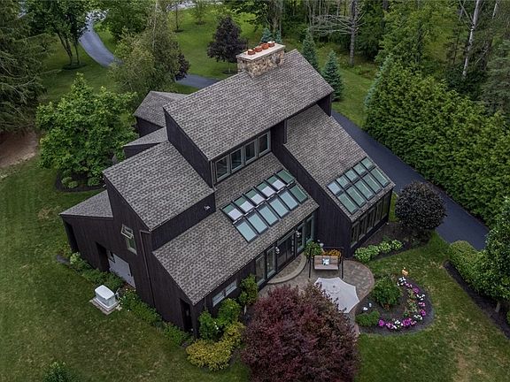 Custom Country Home situated on 3 prof. manicured acres includes a 2 story heated, insulated 36 x 20 garage and a second outbldg.Entering the home you'll see updates throughout! Quaint country kitchen with WBFP, Quartz countertop, remote under-counter lights, removable center island, new tile floors. Great room w/vaulted ceiling holds impressive wall of windows,remote shade skylights, 2 story stone fireplace, more. Hdwd floors w/Marble inlay. Large dining room w/open staircase.Custom lighting throughout.One of a kind Sunroom features Cactus garden (with auto heat and water),skylights w/rain sensors,tile floors,wall of windows/doors to paver patio and lush gardens...Mostly perennials. A cozy living room, Master Suite and new updated half bath complete the first floor. Upstairs are 3 good size bedrooms (one w/a loft and one w/cedar closet.) and a new full bath w/ oversized shower. Custom multi zone Nat.Gas boiler system and a Buderus wood /coal burning furnace. Whole house Generac generator, Central vac, whole house fan. Fireplaces and kit stove have gas lines ready to connect. Huge high, dry basement (2 entrances). Roof 2010. Heated att. garage, Must See Outbuildings! Immaculate!