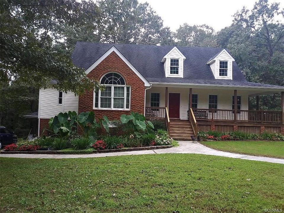Nature Lovers Delight!Bring your 4 WHEELERS and RELIC HUNTING tools! Beautiful Cape Home Convenient to I-95, 295,288 and I-85 and Ft. Lee. Enjoy this tucked out of the way home where a Country wrap around front porch enters to the Great room with hardwood floors, Cathedral ceilings and brick wood burning masonry fireplace with 2nd flue in basement! Kitchen has tiled floors and eat-in area has access to the covered back porch for those nice summer evenings sitting out with your friends! The Master bedroom has engineered hardwood floors and a large Palladium window, in-suite bath with a shower and jetted tub and his and her closets! Another large bedroom on 1st floor also has a bathroom just outside. The loft/office area and the 3rd bedroom that also has a full tiled bath/shower combo and new vanity. The basement has tiled flooring and a full bathroom with a shower that you can access from upstairs or garage and heated/cooled with mini-split unit. There is a large cleared area for potential garage site with current perk and lots of room for outside storage. There is a plat for proposed garage site attached . Main HVAC was new in 2015. Seller is an Owner/Agent
