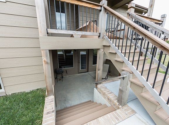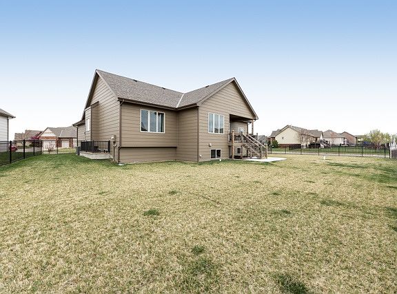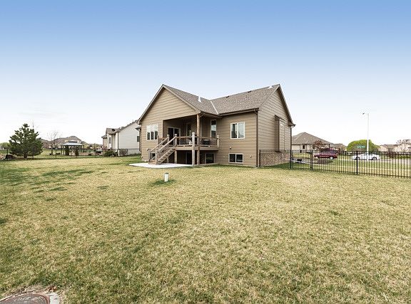 No need to waste time building, this nearly new dream home is ready to go! Completed in December 2014 with custom details throughout, you won't find a nicer home. An expansive flowing design welcomes you the moment you arrive and the floor to ceiling custom stone hearth is a true eye catching centerpiece. Beautiful hardwood flooring carry through the living room, kitchen and master suite and you will absolutely love the the plantation shutters and wood beam ceiling detail. Your kitchen is outfitted with a large granite island with plenty of room for people to gather. Stainless steal appliances and gas range are added bonuses along with the walk-in pantry. Quick access to the covered deck from the kitchen and living room make the outdoors one step closer. The master suite is spacious providing all the room you need for large furniture and the spa like en-suite bath includes his/her sinks, separate tub, custom walk-in tile shower with rain like shower head, and large closet with pass through to laundry room. Two sizable main floor guest bedrooms and nicely appointed guest bath make wonderful space for kiddos and guests. The lower level is huge! Featuring tile flooring, gas fireplace, more than enough room for family room set up and game tables. There is true walk-out access to the back yard and the wet bar is perfect for entertaining. Also found in the lower level is a powder bath, two guest bedrooms, and a full guest bath. The yard is irrigated and includes fencing and a new patio at the base of the of the deck. This home really is like new!