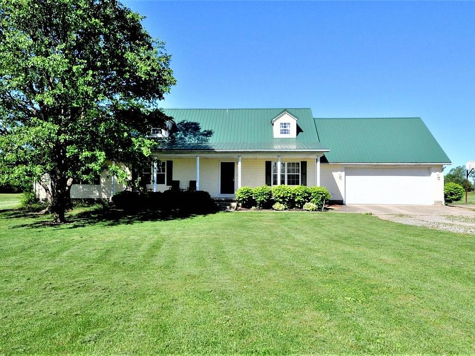 Back on Market. Country living on almost 7 acres and only 30 minutes to downtown Columbus! So much home to love here! You'll love the peaceful view from the inviting front porch. The open floor plan offers easy entertaining. Formal living room, great room, 1st floor laundry. You'll love the deluxe 1st floor owner's suite room addition, w/ vaulted ceiling, walk-in closet, and full bathroom with jacuzzi tub, separate shower, & double sinks. A 2nd full bath off the great room. Upstairs is a loft w/ sky light; two big bedrooms and a third full bath. Plus, a large basement for storage and big two car garage with room for storage. Lots of space both inside and out in a beautiful location.