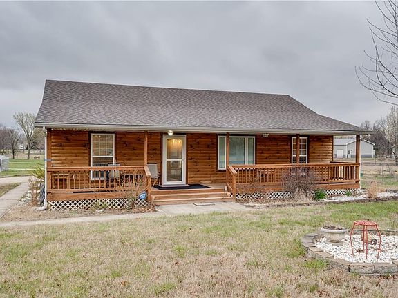 If living in the country – just minutes from Nevada, Mo is what you are looking for in a home – check this one out! It certainly checks a lot of boxes. Huge covered front deck stretches 43 ft on the front of the exterior allowing plenty of room for enjoying nature or a wonderful place to display all hanging plants or potted flowers. Heading to the rear of the property you will find a chain link fenced area with 2 outbuildings and a lean to shed. Now that spring is here - everything will begin blooming, and you will love the rose bushes and the beautiful foliage that is beginning to peek out. One of the most favorite places for the owner is the 15x20 screened in deck off the breakfast nook. More amazing views of mother nature and a custom pergola was built just for that reason. Boasting an entire acre is what you will come to appreciate most about living the country life as as well as the Log siding exterior.