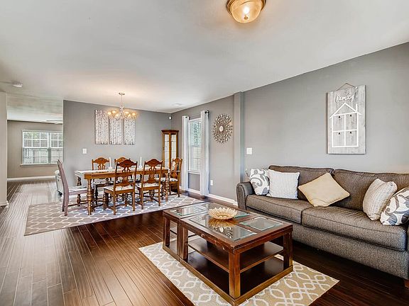 Welcome Home to this charming 4 bedroom, 2.5 bath gem w/ covered rocking chair front porch! Elegant bamboo flooring greets you upon entry. Formal living and dining areas provide plenty of space for hosting family gatherings. Spacious family room w/ a gas fireplace. Bright, open, airy floor plan boasts tons of natural light! Spacious kitchen is embellished with upgraded granite countertops, elegant pendant lighting and a large center island. Upgraded cabinetry and abundant countertop space. Enjoy a large walk-in pantry. Sliding glass doors in breakfast area provide access to the huge, level, fenced back yard - the perfect entertaining space. This immaculate home boasts large rooms and storage space galore! Spacious loft upstairs. Large secondary rooms w/ walk-in closets. Owner's suite features a large walk-in closet, garden tub, separate shower and dual vanities. Move-in Ready!