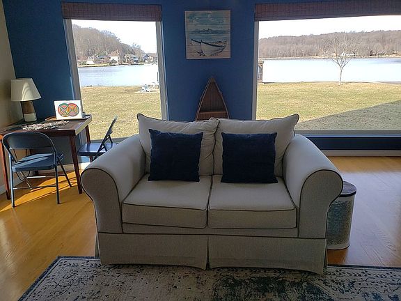 Here's your chance to Live right ON the lake! Lovely 3 bedroom, 2 bath home with 130 feet of lake frontage and gorgeous lake views on a level lot. The home is open concept with lots of natural light from the large windows. Hardwood floors throughout. The first floor has 2 bedrooms, a full bath, and a large kitchen with stainless steel appliances. The pellet stove in the great room keeps things cozy on those winter nights. You will love entertaining guests in the kitchen, which features a large island that opens up to the great room. The great room comes with vaulted ceilings, ceiling fan, dining area and breathtaking views of Treasure Lake. The upper level features a large main bedroom with balcony, deck, walk in closet, bathroom and laundry room. The outdoor living area is complete with a stone fire pit and patio located just steps from the lake. The cantilever dock, with additional seating, is in place and ready for your pontoon, jet skis or power boat. You will love sitting and eating out in the screened in gazebo and enjoy watching all the activity going on on the lake. Oversized two car garage holds all your lake play toys. Extra long driveway that includes private boat ramp. Furniture and furnishings are negotiable. The area is quiet with wonderful neighbors. Home is built on a crawl space, which would be ideal for adding radiant floor heating. Home is only 2 hour drive from Pittsburgh and just over 2.5 hours drive time from Harrisburg. Call or text the owner at 717-708-0655 to schedule a showing. Showings by appointment only.