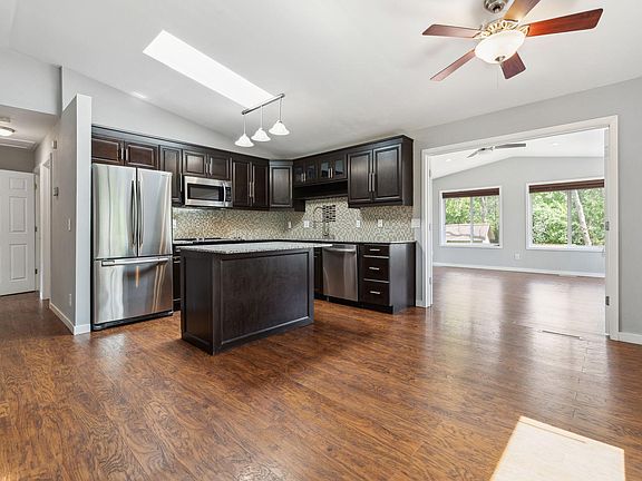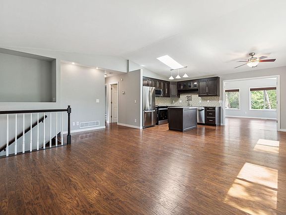 Move in ready, totally updated home! Located in a quiet neighborhood on a cul-de-sac, next to a park. This home has fresh paint, new carpet, hardwood floors throughout the main level, and a new roof 2022. The home features open concept kitchen-dining room-living room perfect for entertainment. The kitchen has granite countertops and SS appliances. The home has an additional room off the dining room separated by French doors perfect for an office, entertainment, or a play room. The beautiful backyard has a covered deck, paved patio with a built-in firepit, two sheds for extra storage, beautiful low maintenance landscaping. The home has an oversized asphalt driveway and a carport attached to the garage for extra parking or storage. This gem is a must see!