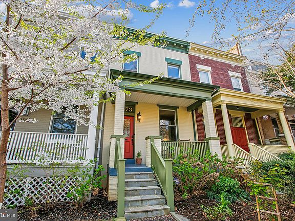 This charming Federal porch-front home, constructed in 1914, epitomizes historic elegance while seamlessly integrating modern amenities. Set on a tranquil tree-lined street adorned with brick sidewalks, nestled within the Capitol Hill Historic District and in bounds for Maury Elementary School. Enjoy listening to “The Pride of Capitol Hill “ Eastern High School Marching Band as this home is on the practice route. Upon entering, the home is bathed in natural light, accentuating the exquisite original heart pine floors, unpainted woodwork, 5-panel doors, and lofty 9-foot ceilings. The main level features distinct living and dining areas, augmented by a convenient half bath. The eat-in kitchen is a culinary haven, equipped with granite countertops, stainless steel appliances, and double sliding patio doors leading to a spacious private rear deck, ideal for entertaining or unwinding outdoors. Ascending to the upper level of the house unveils three generously sized bedrooms, each offering ample space for relaxation and rest. These bedrooms are complemented by a bright bathroom featuring a charming claw foot tub, adding a touch of elegance to the space. Moreover, a hallway skylight adds natural light and a sense of openness to the upper floor. The full footprint semi-finished basement provides versatile space for various activities and purposes. It includes a convenient rear walk-out exit, allowing easy access to the rear yard. Additionally, there's a sizable hangout TV area, a cozy sleeping nook and additional commode which offers a comfortable spot for overnight guests.The basement is rounded out with a full-sized laundry area and storage space. Overall, the semi-finished basement adds functionality and flexibility to the home, catering to various lifestyle needs. The quiet dead-end bricked alley situated at the rear of the house makes taking the trash out a breeze. The vibrant culinary scene nearby, with esteemed establishments such as Della Barba, Pacci's, and Capitol Square Bar & Grill, contributes to the neighborhood's allure. Recognized as the "Best Blossom Block" during the Cherry Blossom Festival, the close-knit community enhances the area's charm and cohesion. In essence, this property offers a rare opportunity to own a piece of history in one of Washington D.C.'s most coveted neighborhoods, seamlessly blending historic charm with contemporary comforts for an unparalleled living experience.