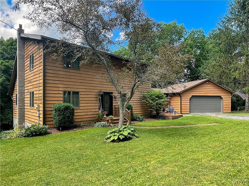 Absolutely stunning country home with 3.4 acres of wooded land! Don't miss out on the opportunity to grab this spring buying season steal. The main level of this home features a spacious eat-in kitchen, a living/dining room with vaulted ceilings and slider to the expansive back deck overlooking your property, a large bedroom and a FULL BATH! Upstairs, you will find two additional bedrooms and another recently updated full bathroom. This home also offers a heated breezeway/sitting room which leads to the oversized heated two car garage. On these warm summer nights, you can sit outside on the wrap around deck and enjoy the privacy as you relax in the hot tub! Need more room? This home also has a large walk-out basement that could be finished for additional space. The lot offers over 500 feet of road frontage as marked by the for sale signs. Updates include some new doors, new lighting, updated baths and kitchen, new gutters, a coal stove, new garage door, new hot water heater and much more!