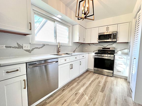 Beautifully Remodeled 3-Bedroom Duplex in Elgin - Excellent Location! Move-in ready and completely updated from top to bottom! This bright and modern home offers 3 spacious bedrooms and 1.5 bathrooms, featuring a brand-new kitchen with quartz countertops, elegant cabinetry, and stainless steel appliances. Both bathrooms have been tastefully renovated with contemporary finishes. Enjoy peace of mind with major recent upgrades, including a new roof, windows, siding, driveway, garage door, interior doors, and new flooring throughout. Ceiling fans will be added in all bedrooms for extra comfort. The large backyard provides plenty of space to relax or entertain. Conveniently located near schools, parks, shopping, and major highways. This is the perfect place to call home-freshly remodeled, move-in ready, and in an excellent location!