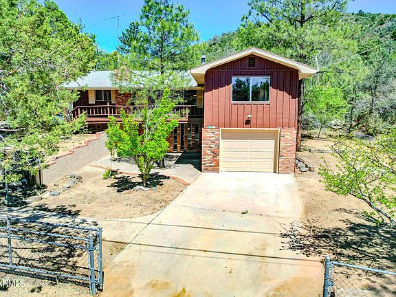 Beautifully updated home in desirable NO HOA ''Sherman Pines'' Subdivision in Prescott. Nestled among the pines, w/ PAVED ACCESS & FLAT driveway. Down the street from Goldwater lake & only 2.5 miles from downtown. This 4 bd, 3 ba, 2 car tandem garage home has been updated with new paint inside & outside, new kitchen granite countertops, new Stainless steel appliances, new laminate flooring on the main floor, and new ceiling fans/lights. Two main bathrooms have been fully remodeled. In addition, main floor contains unheated Arizona room and private rear covered deck. Lower ground floor consists of family room w/ open fireplace, 3/4 bathroom, oversized laundry & access to garage. Fully fenced flat lot is perfect for pets & kids. New septic in 2023.