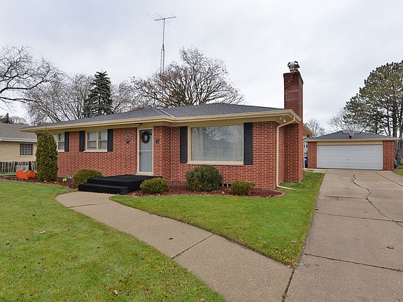 Move-in ready! Well maintained brick ranch home with 3 bedrooms and 2 full bathrooms. Open concept living room with natural fireplace and recessed lighting. Bright kitchen with stainless appliances adjoining dining area. Hardwood floors in living room, dining room and bedrooms. First floor laundry. Partially finished rec room with full bathroom and natural fireplace. 2.5 car detached garage. Fenced yard with new concrete patio for entertaining. New windows, blinds, hot water heater 2020, electric panel. Close to hospital and shopping.