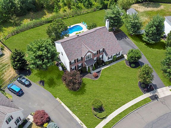 Your dream home awaits you at 1373 Jasper Drive, with its private backyard oasis, in the beautiful tree-lined Chestnut Creek neighborhood of Ambler. Greet your guests at the covered front portico and invite them into the bright and welcoming two-story foyer with custom chandelier and impressive wainscoting trim. Through glass doors to the right, the home office offers the ideal workspace, and to the left you'll find the spacious formal living and dining rooms. Host parties in the designer kitchen, with its island, granite counters, wooden cabinets, custom stone backsplash, upgraded stainless steel appliances, oversized pantry, and breakfast area with bar looking into the adjacent sunny great room. The stone-faced gas fireplace warms up the winter months and bonus windows to allow for extra light to pour through all year round. Up the turned staircase, French doors open to the owners' suite, an oversized private retreat consisting of stately bedroom with vaulted ceiling, casual sitting area, two spacious walk-in closets, and en suite bathroom with soaking tub, oversized glass shower, and dual vanity. The second floor is rounded out by three spacious bedrooms, each with ceiling fans and large closets, plus the shared hallway bathroom with dual vanity. In the basement, you'll find a sprawling recreation room with areas for watching movies, playing games, or working out. Ample closet and crawl space areas allow for all your storage needs. In every season, spend most of your time relaxing on the southwest-facing expansive paver patio, surrounded by private views of nature. Invite all your loved ones to enjoy the spectacular heated saltwater fiberglass pool, which comes with custom cover. You'll be delighted throughout the year with the fabulous professional landscaping and mature flowering trees. Two car garage with convenient laundry in the mudroom, newer roof (2017), updated HVAC (2018), newer water heater (2015), whole house Generac generator, reverse osmosis and whole house water treatment. This immaculate property is everything you've been searching for - Schedule your showing today!
