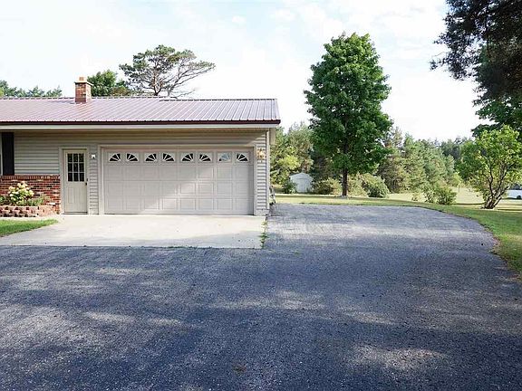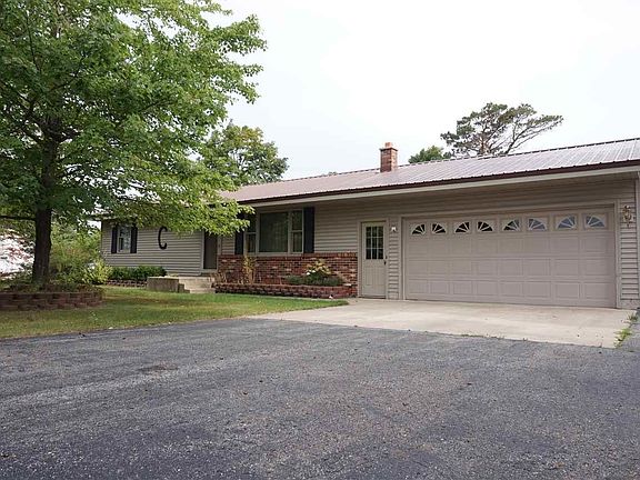In town home with almost 9 acres! A 3 bedroom, 2 bathroom home with metal roof, vinyl siding, large covered porch with ceiling fan, exterior work shop, and 2 storage sheds. There is a concrete pad for your grill and expanded asphalt parking pad off the 2 car garage for your camper or boat. Private setting with mature trees. Built with extra storage, walk in closets, and a cedar closet. Natural gas, air conditioning, and main floor laundry. Huge lower level great room has all kinds of possibilities. If you love to be outside with room to roam then this place is for you. Conveniently located home with land. Survey just completed and stakes are in place. Includes access lot, parcel home sits on and land behind the house and to the west for 8.14 acres.