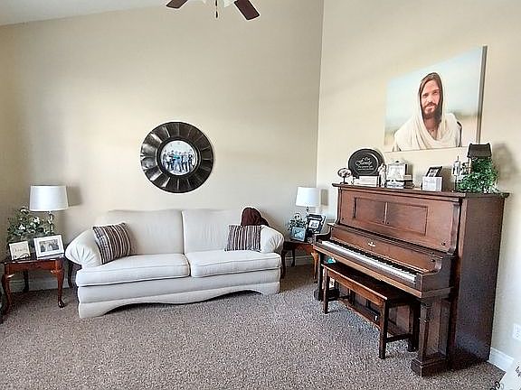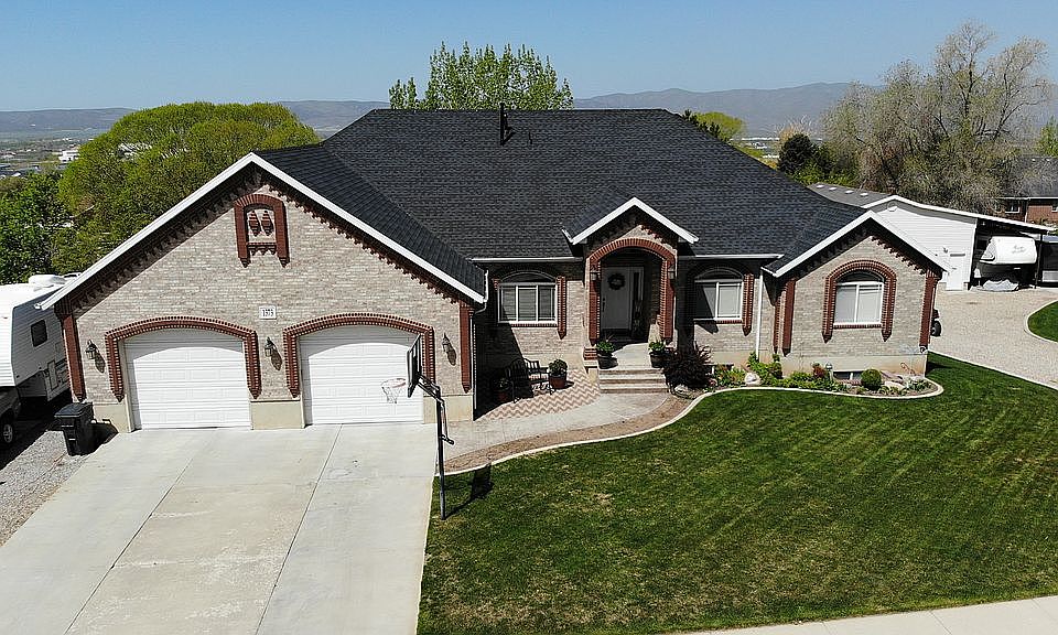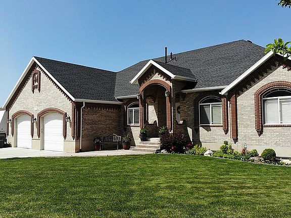 This is a custom brick home with a great walk out basement. It has a large yard with several fuit trees, shade trees, and a garden spot. It also has a huge, beautiful, covered deck that gives you views for miles. There are also beautiful views of Mt. Nebo and red cliffs from the front porch. This home is in a wonderful neighborhood. It is close to schools, churches, and other convienences. There is also a cemetery 1/2 block away that is very nice to walk in. The basement also has 9 ft. ceilings which gives it a nice open feeling. Huge garage and parking space on the side for an RV. Only 35 minutes to Provo.