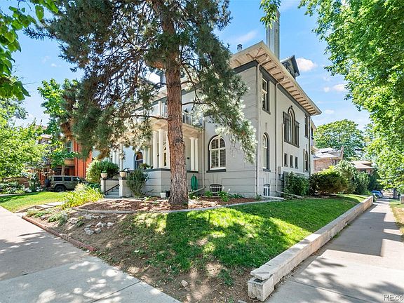 Offering $5,000 towards Buyer Closing Costs! This one-bedroom condo has two bathrooms and offers walkable access to Cheesman Park through a lovely tree lined street. Blending historic charm with modern convenience, the home showcases original woodwork, decorative windows, a wood-burning fireplace, stained wainscoting, high ceilings, coffered ceiling, and abundant natural light. This unit is located on the main floor level of the building which has charming woodwork throughout the public area. The kitchen is thoughtfully designed with a moveable island, decorative ceiling, adjustable open shelving, and stainless steel appliances. Additional highlights include in-unit washer/dryer hookups, an assigned storage closet, heat included in HOA, a resident laundry room in the basement, and a reserved off-street parking space. The spacious bedroom features an ensuite bathroom with a tub and double sinks and the bedroom has two separate clothes closets. Hardwood floors extend across the main level, complemented by newer LVP flooring in the bedroom, and a large front porch offers the perfect spot to relax outdoors. Enjoy nearby businesses such as the Denver Botanic Gardens, Ritual Social House, Thump coffee and more. With its prime location near both Downtown and Cherry Creek, this condo is as practical as it is charming.