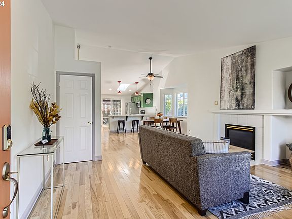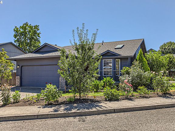 Welcome to this wonderful Northeast Canby home. The flowers, shrubs and trees on this corner lot, welcome you home with a variety of color throughout the growing season. Inside you will find Ash hardwood floors throughout the living area excluding the bathrooms an laundry. Cozy up to the gas fireplace on cooler days and relax in the comfort of AC on the warmer ones. Enjoy preparing meals in a well laid out kitchen with Quartz counters. Primary has its own ensuite bathroom and walk-in closet. Recent updates include: water heater in 2021, dishwasher in 2021, exterior paint in 2023, 50 year roof in 2023 with transferable warranty, paver patio in 2023, furnace in 2024 and interior paint in 2024. This move in ready home is waiting for you!