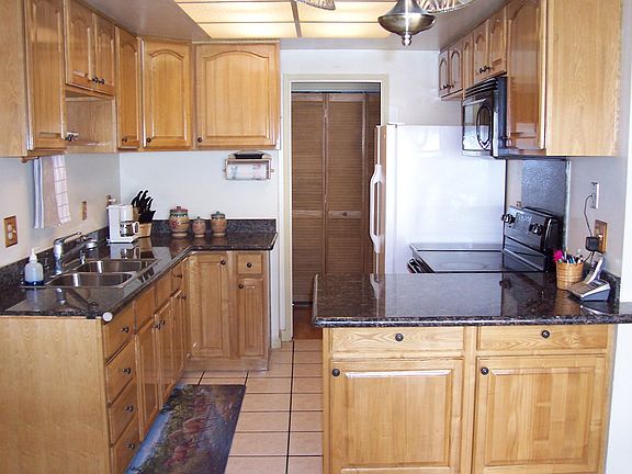 CUTE AND COZY #239~ Two story with two bedrooms, two and a half baths. Remodeled kitchen with Oak cabinets, granite counters and tile floors. Living room with fireplace. Two car garage with cabinets and sink. Community pool and large playground area.