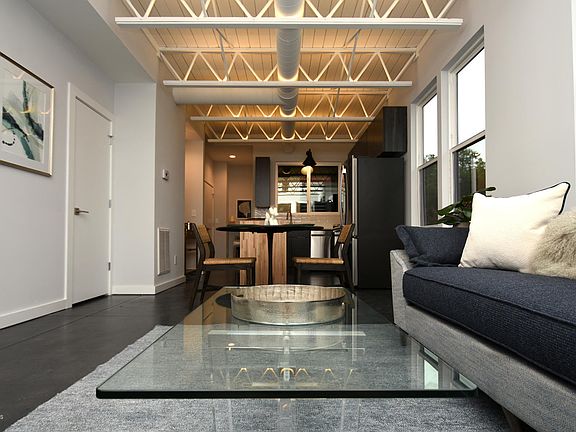 LaRue urban living in the South Front District of downtown Wilmington, offers a sleek design and efficient living space. The townhome has 2 levels that allow for comfort and privacy. The first floor features the living room, dining and kitchen which includes dishwasher and stove/microwave alongside a half bath and storage room. From the living area wood stairs lead to the second floor to the 2 bedrooms each with large walk in closets and full baths with full tile shower. Each home will have 1 assigned parking space on site. Gated Community.