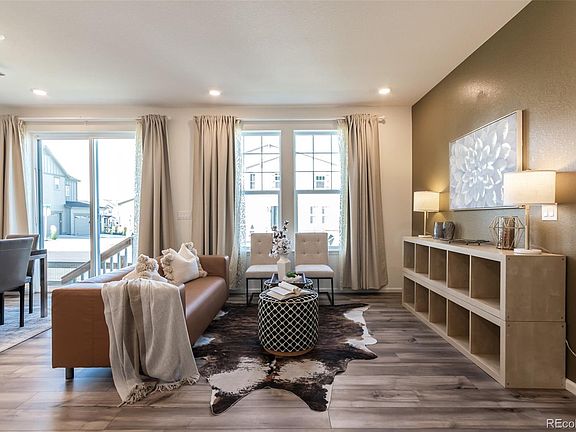 BEST PRICED UNIT IN THE ENTIRE COMMUNITY!!Don't miss this captivating END UNIT complete with a park right out your front door. As you approach, the cozy front porch sets a welcoming tone, inviting you into a world of refined living. Step inside to discover rich luxury vinyl flooring, and numerous builder upgrades a large living room,w/tons of bright light that create an atmosphere perfect for entertaining. The space flows seamlessly into a sleek great room, where every gathering becomes a memorable occasion. This area is designed with modern living in mind, featuring an open layout that encourages interaction & enjoyment. At the heart of the home is a chic kitchen, ready to delight any culinary enthusiast. Stainless steel appliances blend with a stylish tile backsplash and lustrous quartz counters to offer both functionality & beauty. A pantry provides ample storage, while the center island, crowned with pendant lights, doubles as a breakfast bar, ideal for morning coffee. Retreat to the elegant main bedroom featuring a generous walk-in closet & a private bathroom with dual sinks & a soothing soaking tub. This personal oasis promises relaxation and privacy, crafted to provide a tranquil end to each day. The home also includes a spacious FINISHED BASEMENT, an expansive area that’s perfect for a family room or home theater. It also houses an additional bedroom with a walk-in closet and a full bathroom, perfect for guests or family members seeking their own space. Outside, the Professionally Landscaped/stamped concrete backyard/water drip garden/flower system awaits, offering a peaceful setting for serene afternoons and intimate gatherings. This outdoor space is a quiet retreat from the hustle and bustle of daily life. Located just minutes from scenic lakes and parks, this home not only provides a beautiful living space but also offers easy access to outdoor recreation and relaxation. Experience the charm and sophistication of Flatiron Meadows; your new haven awaits.