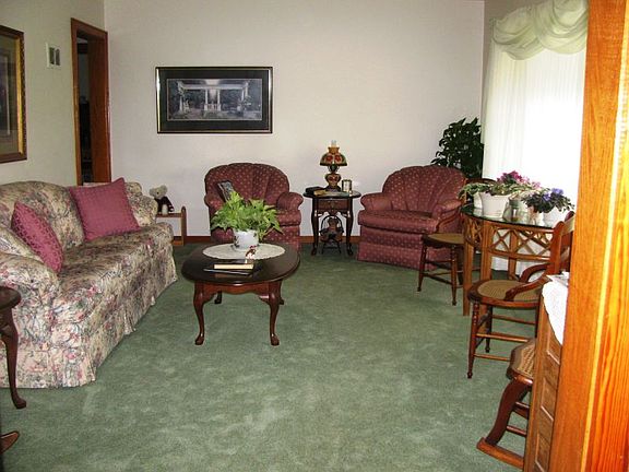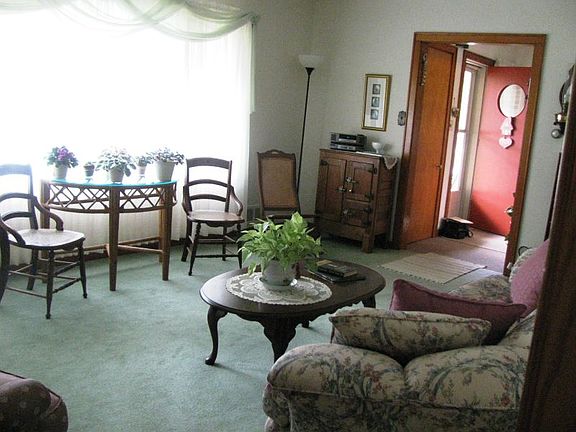 This is a charming brick home in ready to move in condition. It has been so well maintained. * New 40 year metal roof, * New windows w/screens * Hardwood under carpeting in Living Room, Hall & Bedrooms. * Seller uses one bedroom as den. * Kitchen is eat-in size and it has a built-in china and desk & there is a door to garage as well as one to back door where there is a neat patio and a lovely view of the 1.7 acres included. * The basement has a summer kitchen area and a shower plus a walk out door that's perfect when working outside. * Security sensor light in place. * New door on garage in 2012.
