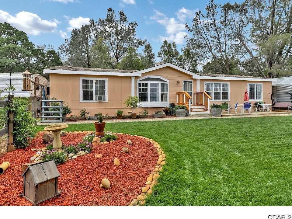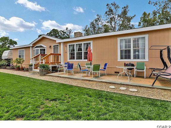 Private top of the hill location with 180 degree view stretching from the rolling foothills to the snow covered Sierras. Just minutes from Valley Springs on 10 acres mostly fenced. This manufactured homes kitchen has been updated with granite counters, newer appliances and butcher block island. Newer interior and exterior paint, laminate flooring and carpeting. Open floor plan with master bedroom on one end and spare bedrooms on the other, large dining area off the kitchen and utility room with inside laundry. Front patio taking in the amazing view, 12X20 work shop building, 12X12 storage shed plus a few old sheds adding a touch of rustic charm. Small lookout space built over the well house is great for taking in the views during the day and star gazing at night. Plenty of room for RV.