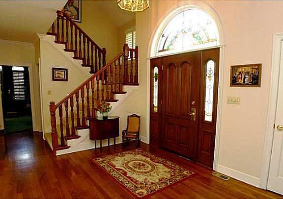 - Bookcases, Tray Ceiling(s), Vaulted Ceiling(s), Hardwood Floors, Breakfast Bar, Double Vanity, Entrance Foyer, Kitchen Island, Primary Bedroom on Main