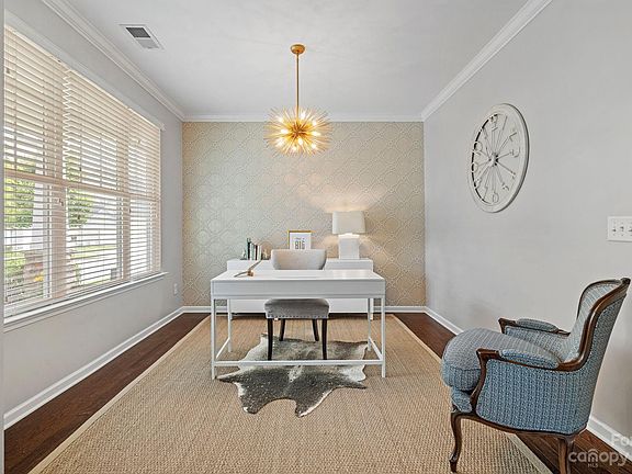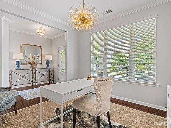 Open, airy, and full of natural light, this Huntersville stunner has been beautifully updated and is move-in ready! This home boasts a charming covered front porch and is oozing with curb appeal. Once you step inside you will love the easy flow of the main level. Office/living room leads to the gourmet kitchen with generous island, quartz countertops, marble backsplash and ss appliances. The open concept kitchen, dining and family room are warm and inviting. Shiplap accented gas fireplace in family room. Primary suite includes a gorgeous bath that features a double vanity with quartz, shower, soaking tub, and huge walk-in closet. Two additional bedrooms, hall bath, and laundry room are upstairs. Drop zone offers tons of storage. A fully fenced-in backyard with patio is the perfect spot to relax or entertain! 2 car detached garage and fantastic corner lot next to community green space. Convenient to Huntersville shopping and dining and with easy access to I-77 and I-85!